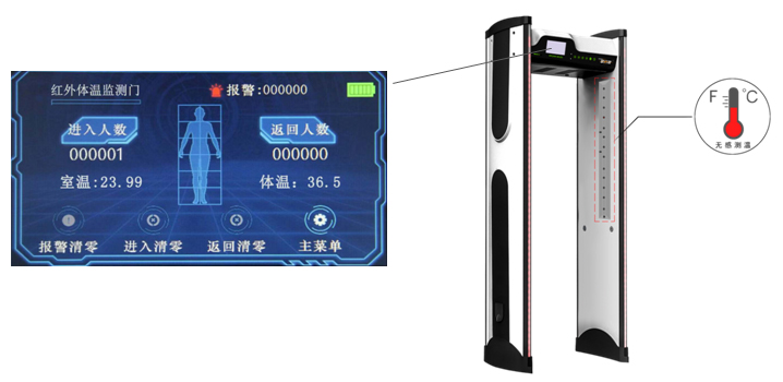 测温安检门,可通过非接触式测温,实现通过人员和温度的准确匹配,建立首道防线;能够对过检人员进行金属检测,集测温、金属检测于一体;