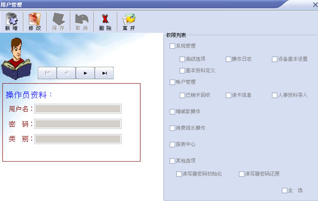 帐户管理可以对卡片的录入、修改、挂失、解挂、注销、回收等卡操作