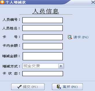 增减款操作可以对用户卡片的金额进行充值、扣除、提取、查询等操作