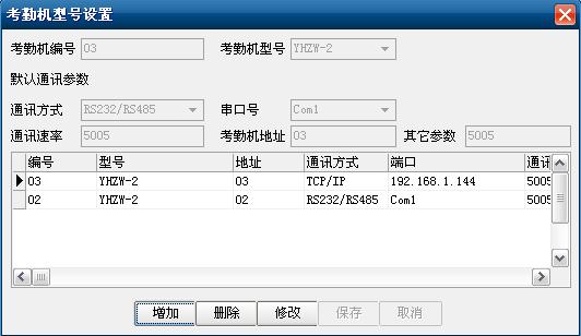 设置考勤机的编号、型号、地址、通讯方式(有232/485,也有TCP/IP)