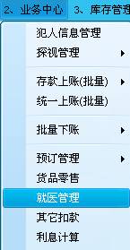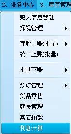 2.4犯人扣款下账。主要是犯人的下账管理,包括:货品预订、购物、就医、其它扣款等。