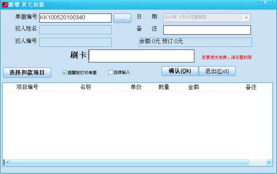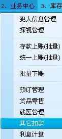 10)其它扣款:犯人扣款下账。(其它模块有更详细的操作)