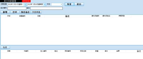2)其它扣款下账管理。其它扣款下账本系统指的是,除购物,就医等外有专门的下账管理模块外的其他扣款,比如:损坏公物扣款。