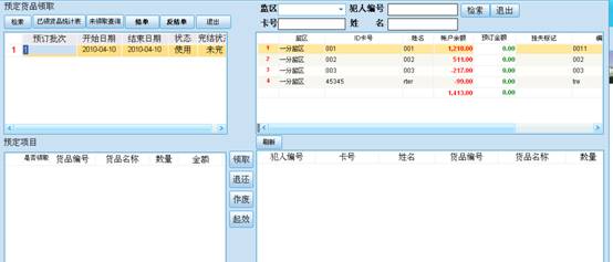 犯人预订时,将在犯人的帐户上产生预订金额,原账户中预订金额这部分不能再次消费,领取货品时,会自动从犯人帐户上扣除掉。