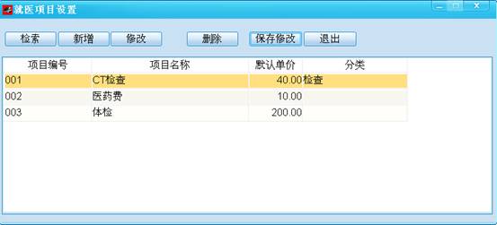 1)就医项目设置
