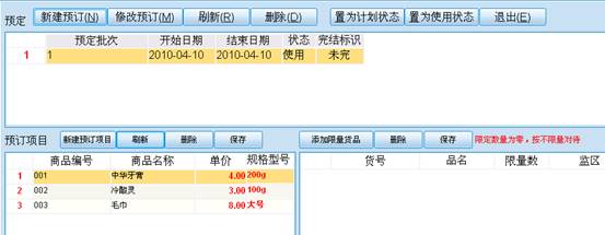 1)制订 预订计划。包含内容:预订批次,预订开始日期,预订结束日期,本次预定涉及的货品明细,货品预订限量表 等。