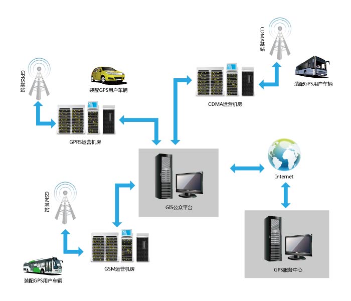 车辆GPS监控、管理系统是利用目前国内使用最广泛的GSM、GPRS或短信息移动通讯网络来进行移动数据服务,车辆移动目标的数据(定位信息、求助信息、报警信息等)是用移动数据通道进行传输的,下行数据(查询指令、调度信息等)也是利用这种方式发送,从而实         现运输车辆的定位、调度、服务和管理。