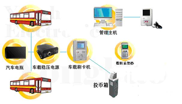 国威非接触式IC卡公交管理系统主要由软件和硬件两部分组成,其中硬件端主要由车载POS机、车载电源、发卡器、采集器等组成,如图所示。